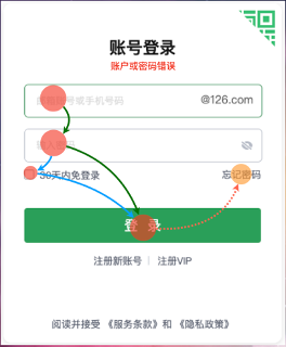 用户名->密码->登录,这是主操作流,从视觉(排版)上遵循了从上到下的用户浏览习惯,引导着用户的操作流。