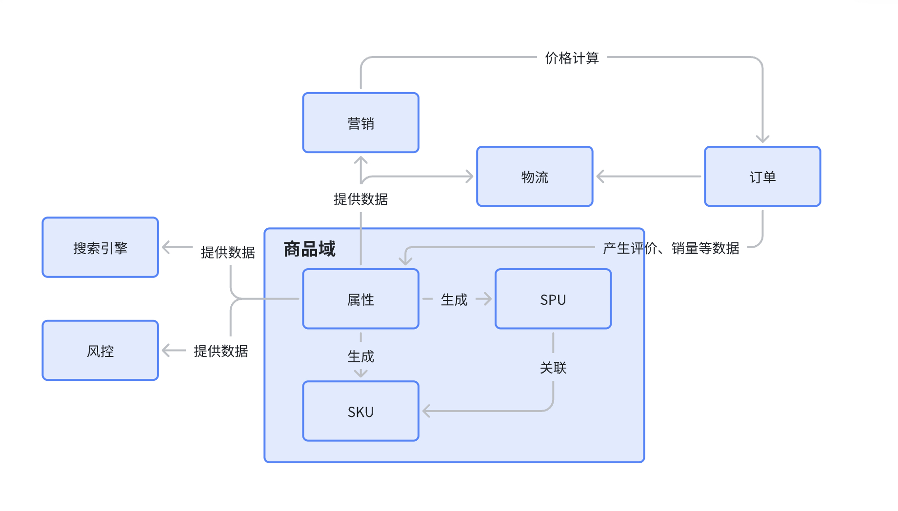 前面都是属性对其他业务的输出,订单会产生数据同步给属性,包括销量、评价等数据,丰富属性数据。
