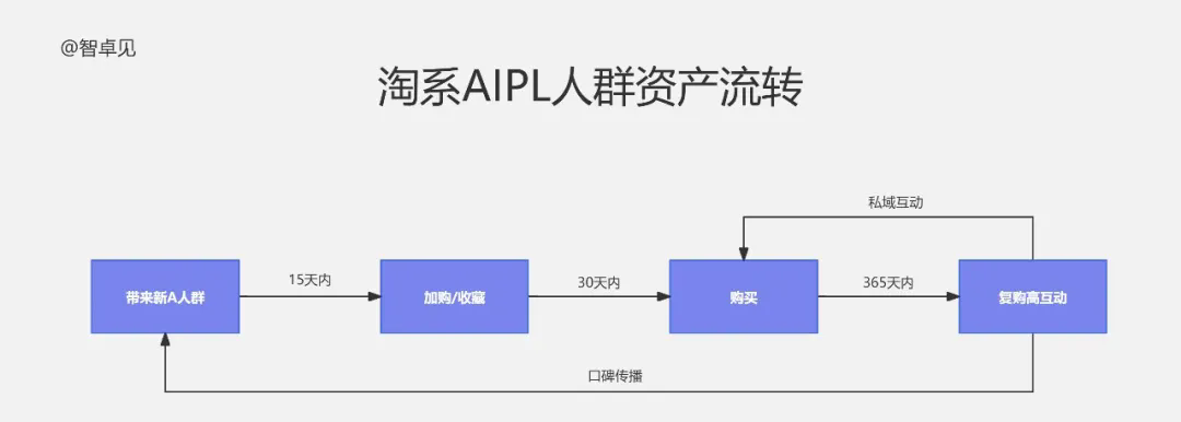 其实,淘宝已经早在2016年11月就提出了,基于标签、千人千面,也就是后来逐步清晰的人群资产运营方法论——AIPL运营模型。