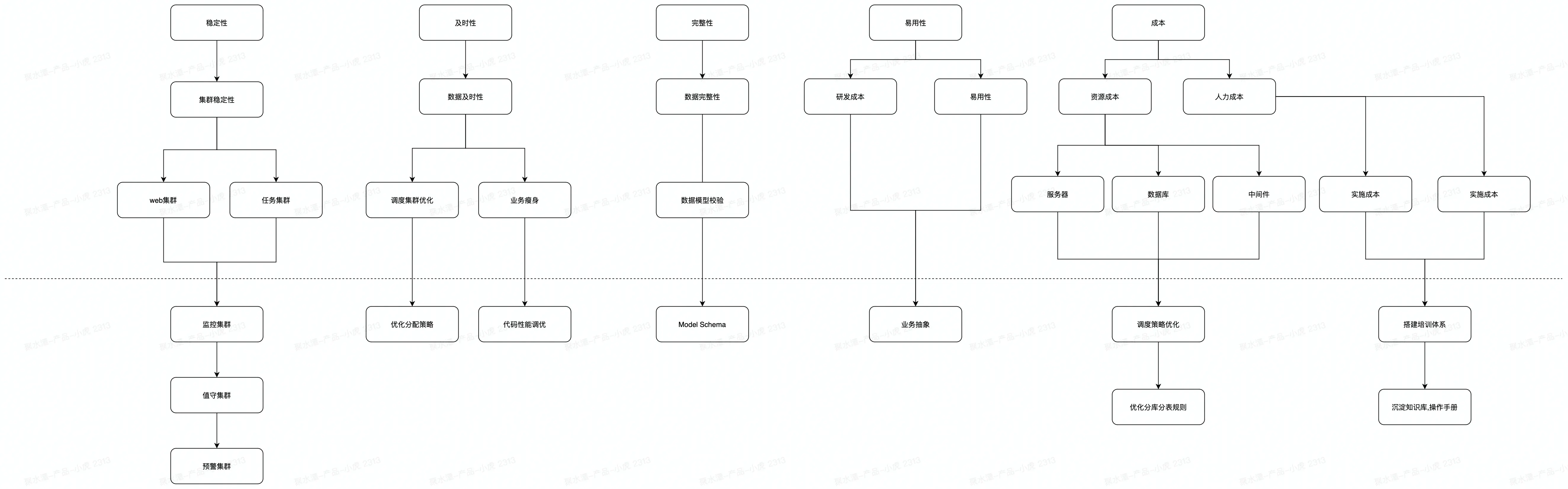 这里描述的是集群稳定性,规模庞大的商家群体意味着会存在规模庞大的数据链路,为了减免宕机等稳定因素对业务产生不可逆的影响,也是业务的基石。