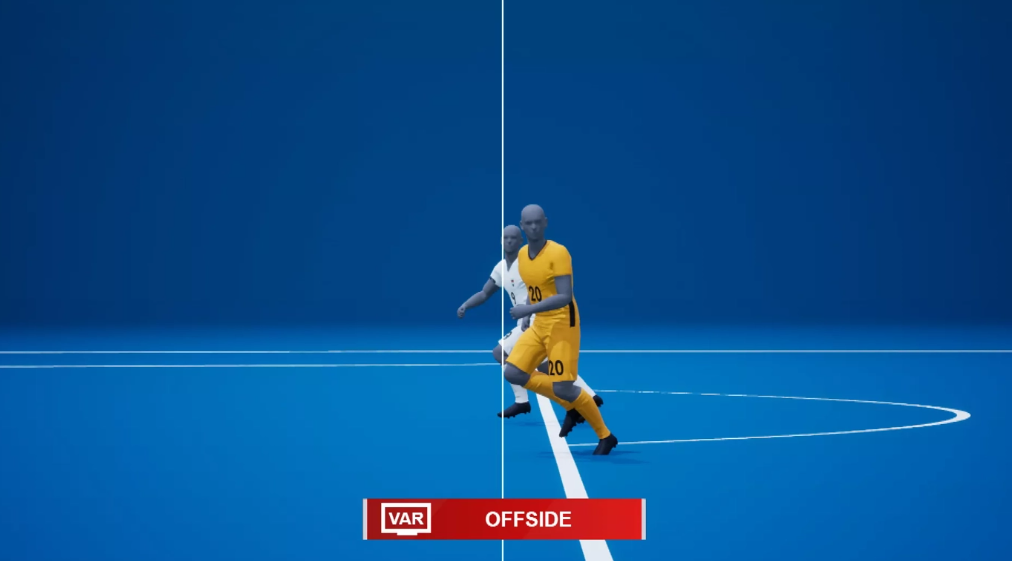 在视频裁判和现场裁判确认后,系统将使用完全相同的位置数据点生成 3D 动画,详细说明球员四肢在球场上的位置。这段 3D 动画将始终以最佳视角展示越位情况,然后在体育场的大屏幕上播放,还将提供给转播频道,以最清晰的方式通知所有观众。