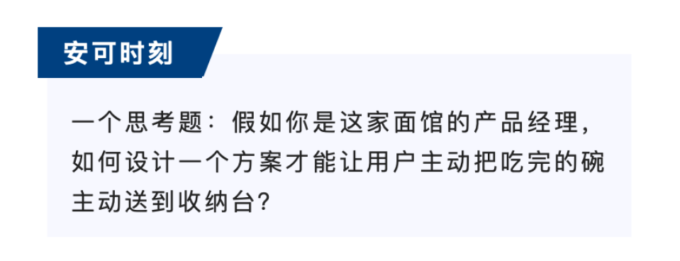 让顾客把吃完的碗筷主动送到收纳台是一个很好的期望,其中对应两个成本,一个是顾客成本,一个是店家成本。