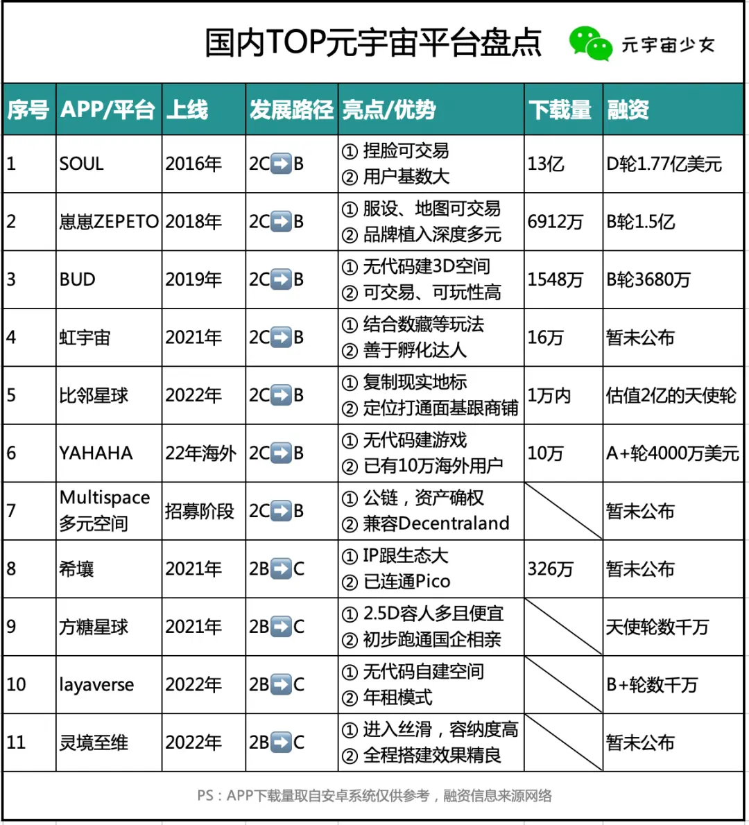 下表是经过评测挑出来的头部社交跟企业元宇宙平台,也是最先、最好赚钱的。