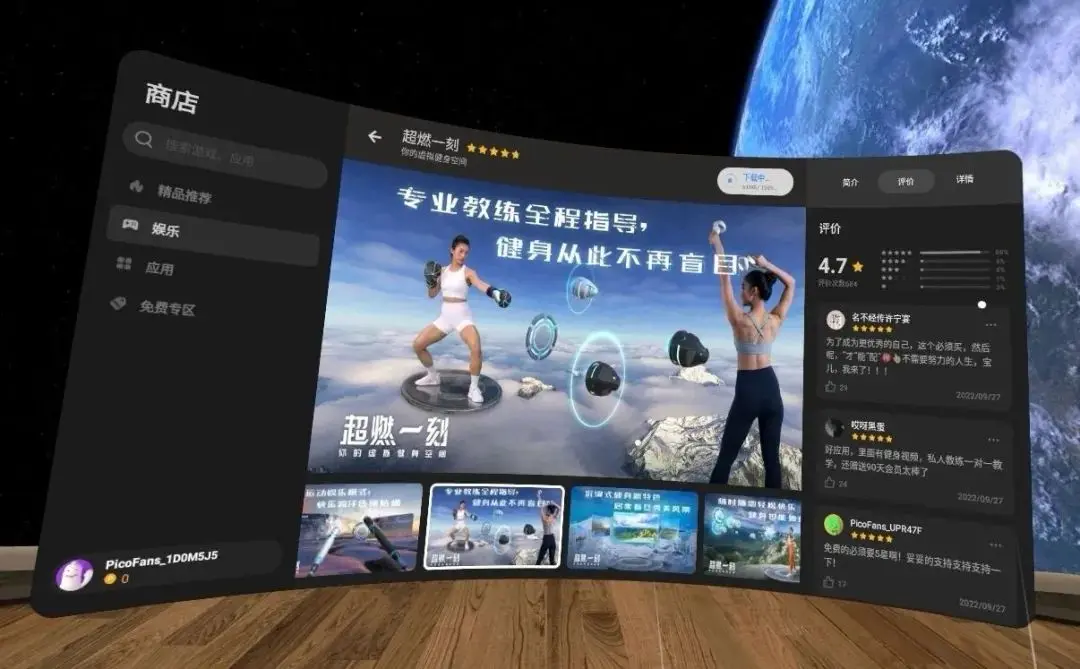 突破口是慢慢摸索出来的。比如今年,Pico就把内容重心转向了影视,新增了知名脱口秀、纪录片等。重点是评分最高的软件已经涌现出来,是运动健身类,初步验证了这个垂类市场。
