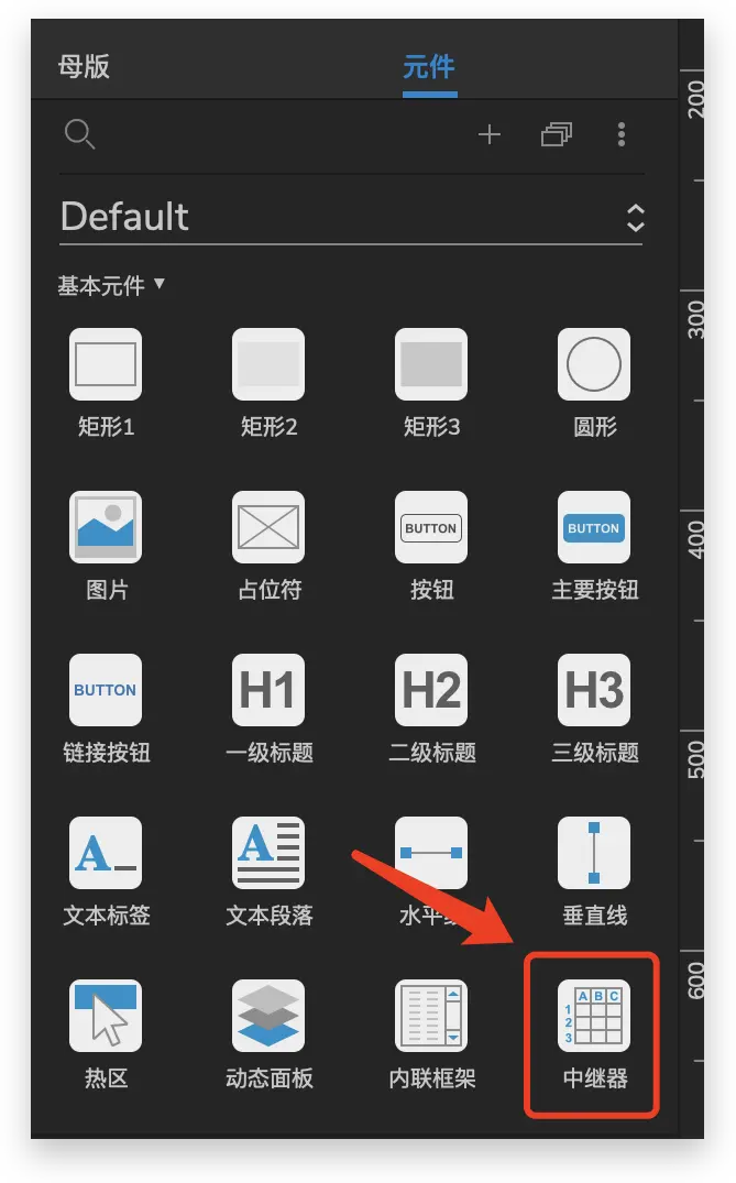 在Axure RP 9中,基本原件的最后一个原件就是中继器。