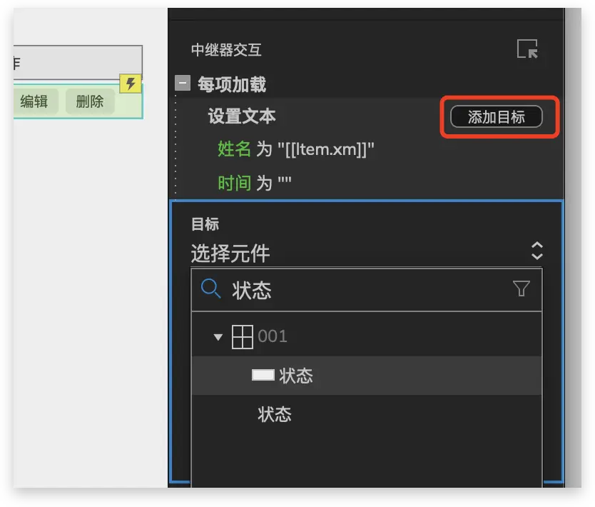 双击中继器,是个类似动态面板的界面,其操作逻辑也跟动态面板一致。