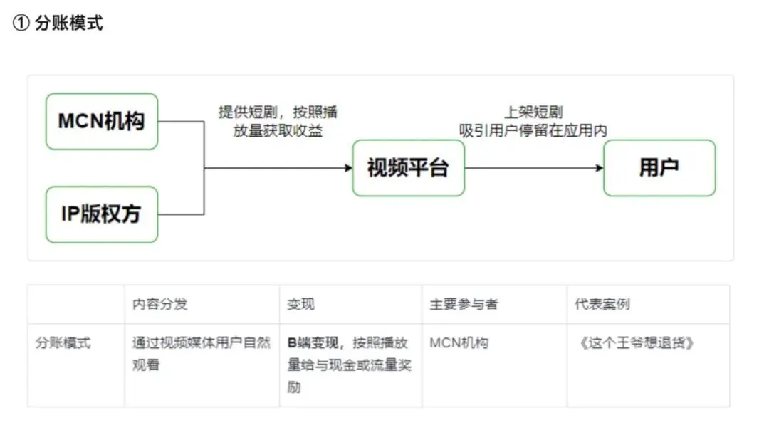 目前短视频平台上的短剧玩家,大多是个人创作者和MCN机构,走的是内容涨粉、养号做网红,再用广告、直播、电商等方式变现的路子,平台也会给予官方补贴和流量播放分成。