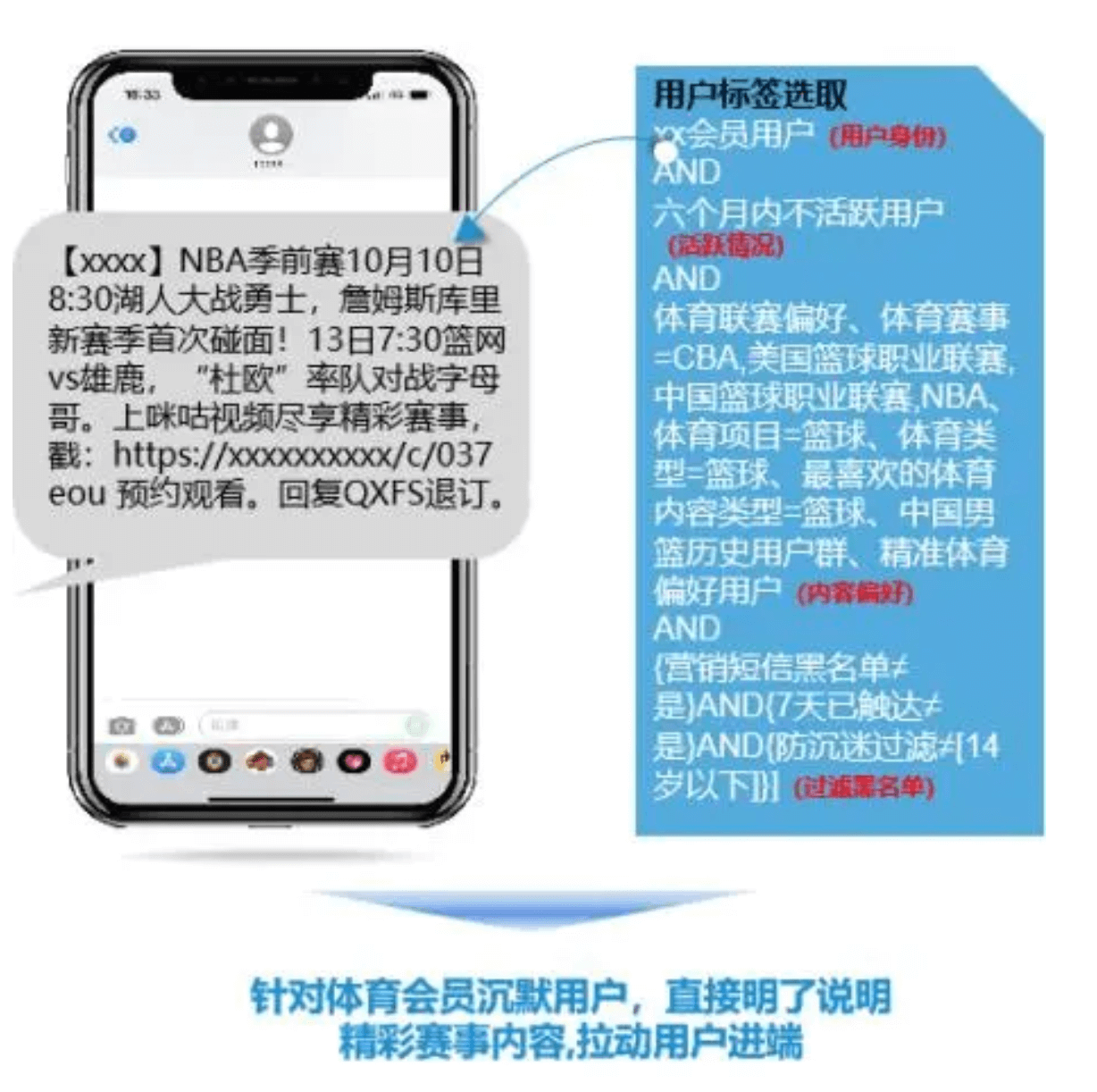 在实际发送短信的过程中,这三种吸引往往会搭配使用形成“组合拳”,且无论是哪种吸引,都需要炼出最重要的亮点,并且通过场景化的描述呈现出到目标客户面前。暨在用户画像的基础上匹配不同的短信运营策略。