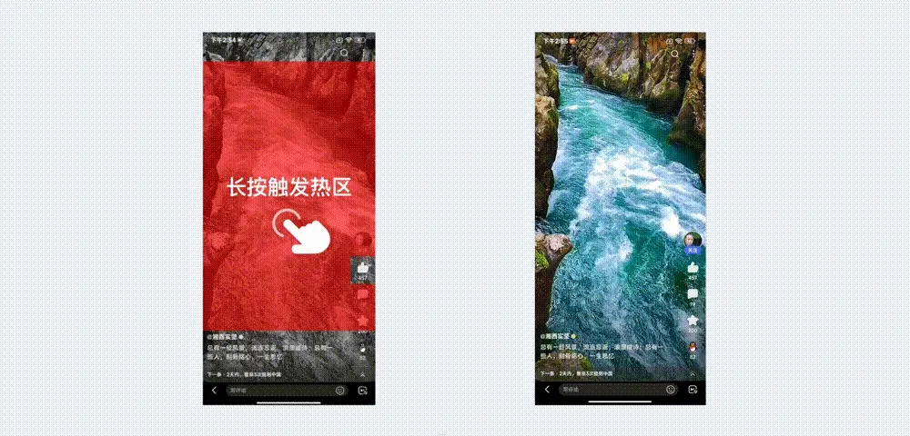 那么如何在兼容用户已有长按操作习惯的基础上再拓展“快捷菜单”呢?是否有可能将“快进”和“快捷菜单”进行融合?这也是本次项目对于便捷手势体验的重要设计探索点。
