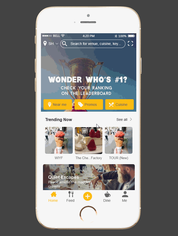 这是一款由Mockplus制作出来的美食类APP原型,通过动图我们可以看到,它最大可能的还原了App的配色和交互,效果几可乱真,我第一次看到都觉得十分惊喜。另外,Mockplus不仅在交互方面高度还原,弹出、内容切换、滑动这些基本交互都能轻松实现,它还特别注意细节的设计,在图标、按钮形状、输入框样式等的属性上都做了相应的设置。看到这样的原型设计,难道你不想赶快get一个同款吗?