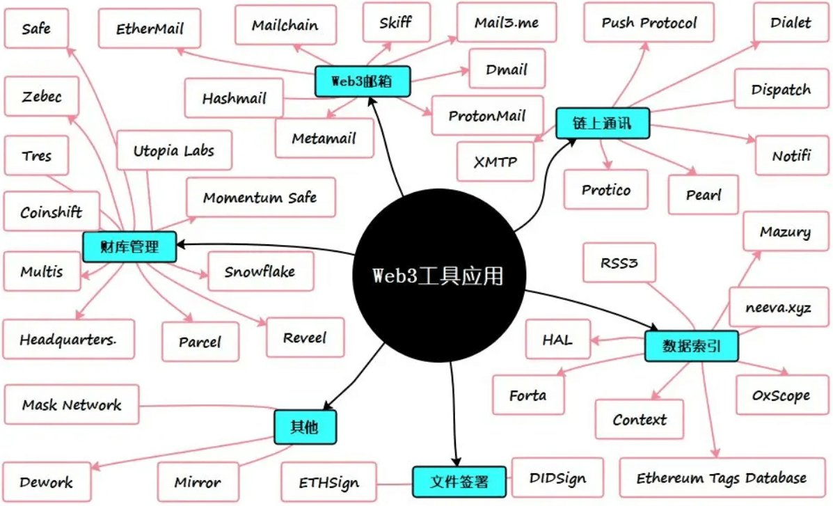 不过,当前Web3正处于夯实地基的阶段,离实现Web3的庞大愿景还较远,其工具还处于探索阶段,现有的Web3工具多数集中在Web3邮箱、财库管理、文件签署等。