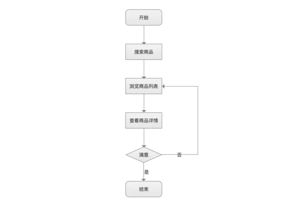 流程图:用图示的方式反映出特定主体为了满足特定需求而进行的有特定逻辑关系的一系列操作过程。精简一下,就是流程图是用图示来表示某一系列的操作过程。这个操作过程有特定的主体,是为了满足特定的需求且有特定逻辑关系的。例如:京东的购物流程,特定主体是用户、特定需求是购物、特定逻辑关系是用户购物过程中的逻辑。