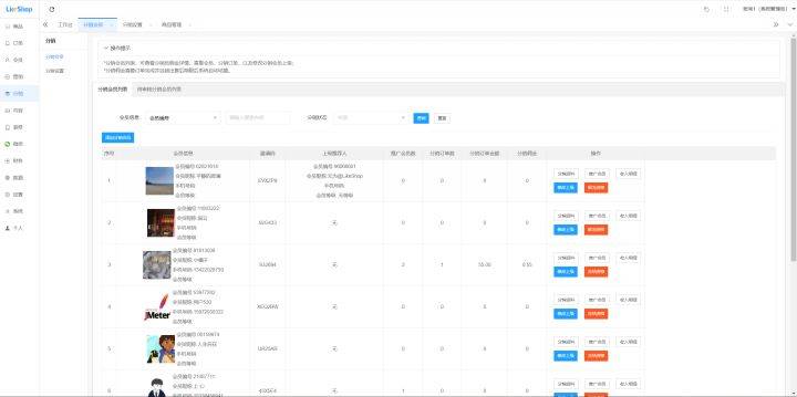 分销会员列表可以看到所有的分销会员信息、推广下级分销会员信息,并且对分销会员信息进行审核以及“增删改查等等”。