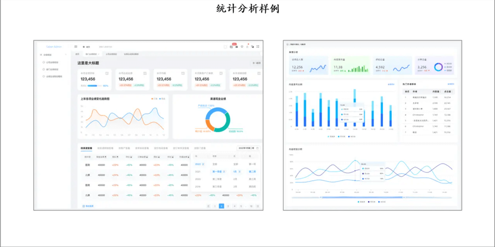 2)图形化统计报表:可视化展示数据的统计情况,灵活应用折线图、柱状图、饼状图等图表进行呈现。