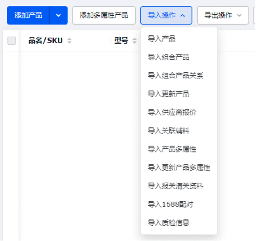 为提升操作效率,后台除了手动添加,还支持导入产品信息。支持导入多个产品和导入多个产品单一维度信息 2 个维度。