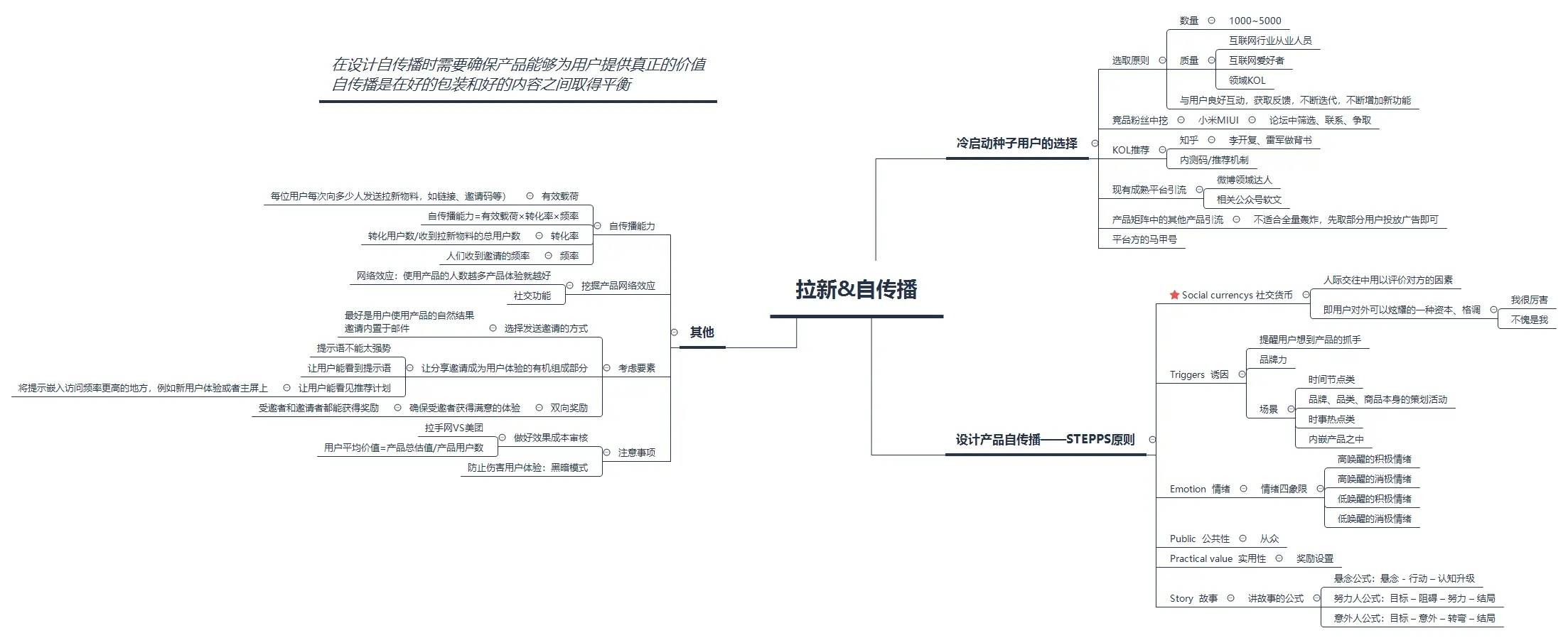 一个优质的获客活动往往与用户自传播密不可分,在增长黑客——AARRR模型的最后一章,我们将同时讨论模型中的最后两个模块——自传播和获客,让整个用户增长模型形成闭环,下面是整篇文章的思维导图。
