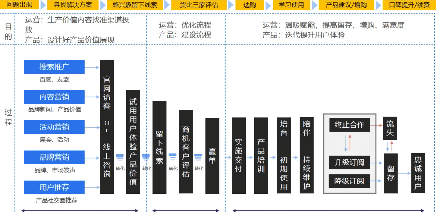 B2B 内容营销基本贯穿客户的全生命旅程,并且在不同的生命旅程对应不同的内容营销策略。企业需要通过生产相关的、有价值的、有吸引力的内容,传递给目标客户,以吸引新客户或增加老客户的复购。