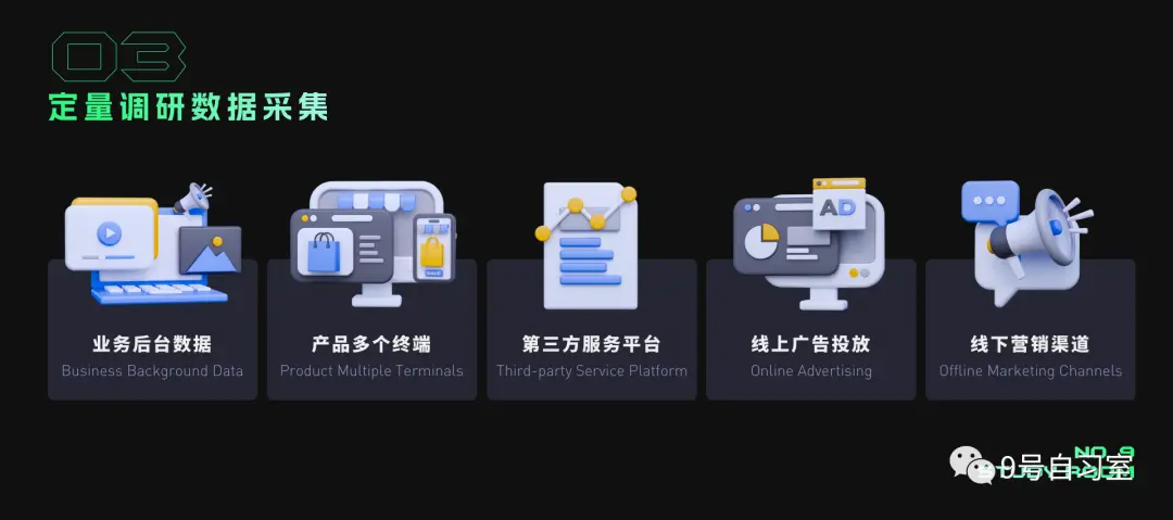 定量研究主要以数据、模型、图表等表达最终研究结果,因此最终要将目标用户产生的数据进行集中采集,通过数据埋点、第三方数据统计或是定量研究的结果等渠道方式进行数据的收集,而很多头部互联网公司经过多年的运行也产生了自己产品的数据仓库。