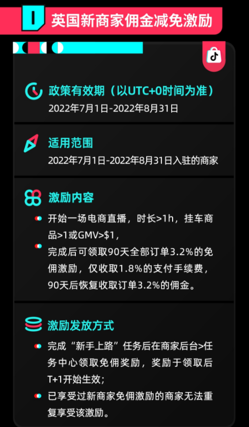今年以来,TikTok持续针对英国、东南亚市场推出好几波直播激励,比如佣金减免、邮费减免、手续费减免、天天开播赠满减券等措施。