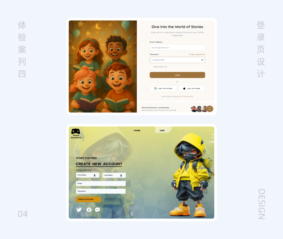 - 构图:两者均采用稳健的左右分割构图,它更像是一个价值宣言页面,极大地降低了新用户的认知门槛,提升了注册的意愿。
