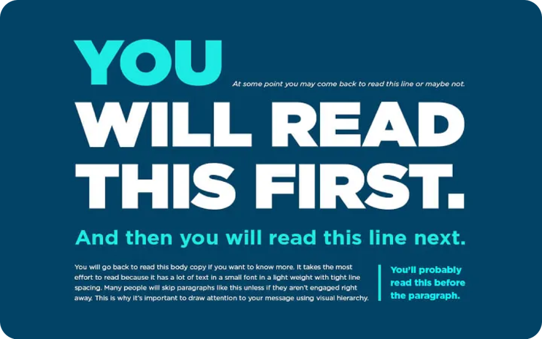 所以,你得像指挥家引领管弦乐队那样把控视觉层级。通过尺寸、颜色、粗细和间距来告诉用户:“嘿,先看这儿!”