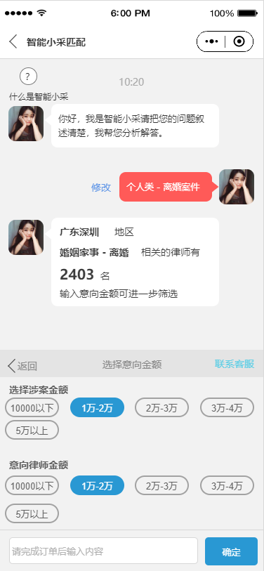 - 合同文书定制:涵盖婚姻类、房产类、借款买卖、股权激励方案等。定制流程简单贴心,从定制服务开始到结束,全程都可免费咨询法律顾问。