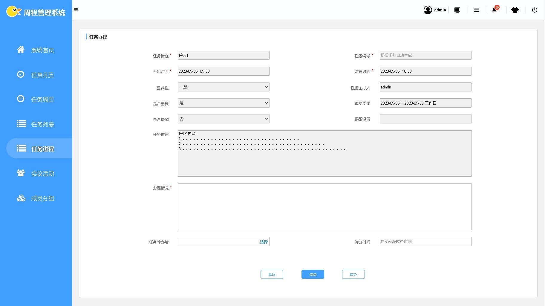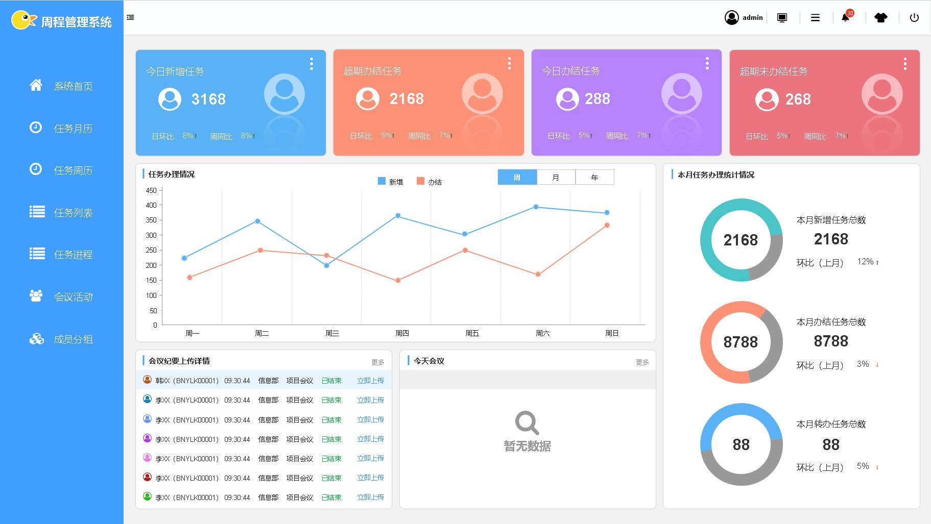 周程管理系统是一套适用于任何协作型组织(如政府机关、企事业单位),全面实施任务过程化、规范化、信息化的管理软件产品。以扁平化管理思想为理论基础,以任务(项目、活动、事宜)过程化管理为核心。是为了满足各种协作型组织协同管理的需求,而设计的任务协同处理的系统。周程管理系统设计完全基于“任务过程化管理”的主要思想,涵盖了企事业经营中目标与过程管理、沟通与扁平管理,将管理理论具体落实到任务协同办理的应用当中。