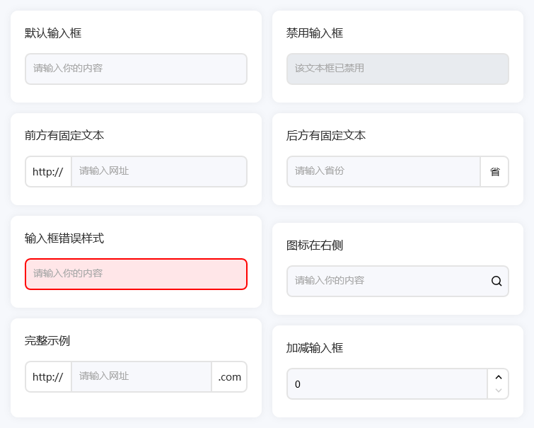 表单类有:输入框、文本域、单选项、复选项、下拉菜单、文件上传。