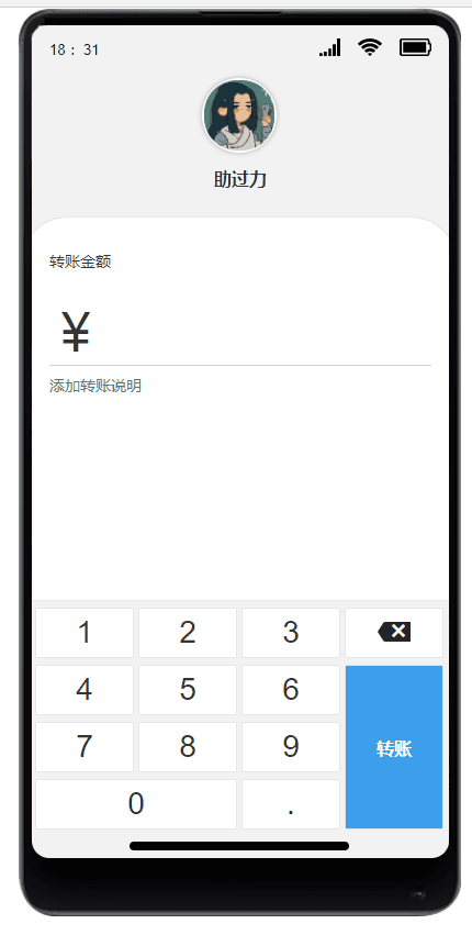 高仿真移动端转账键盘输入页面效果设计